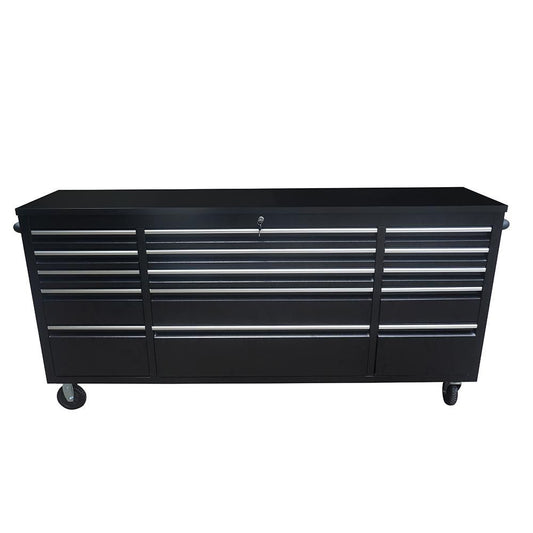 72" Powder Coated Black Steel Tool Chest Box 15 Drawers