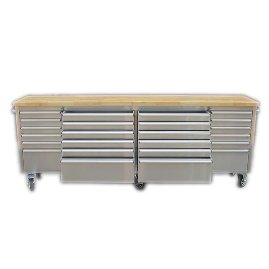 96" Brushed Stainless Steel 24 Drawer Work Bench Tool Chest Cabinets