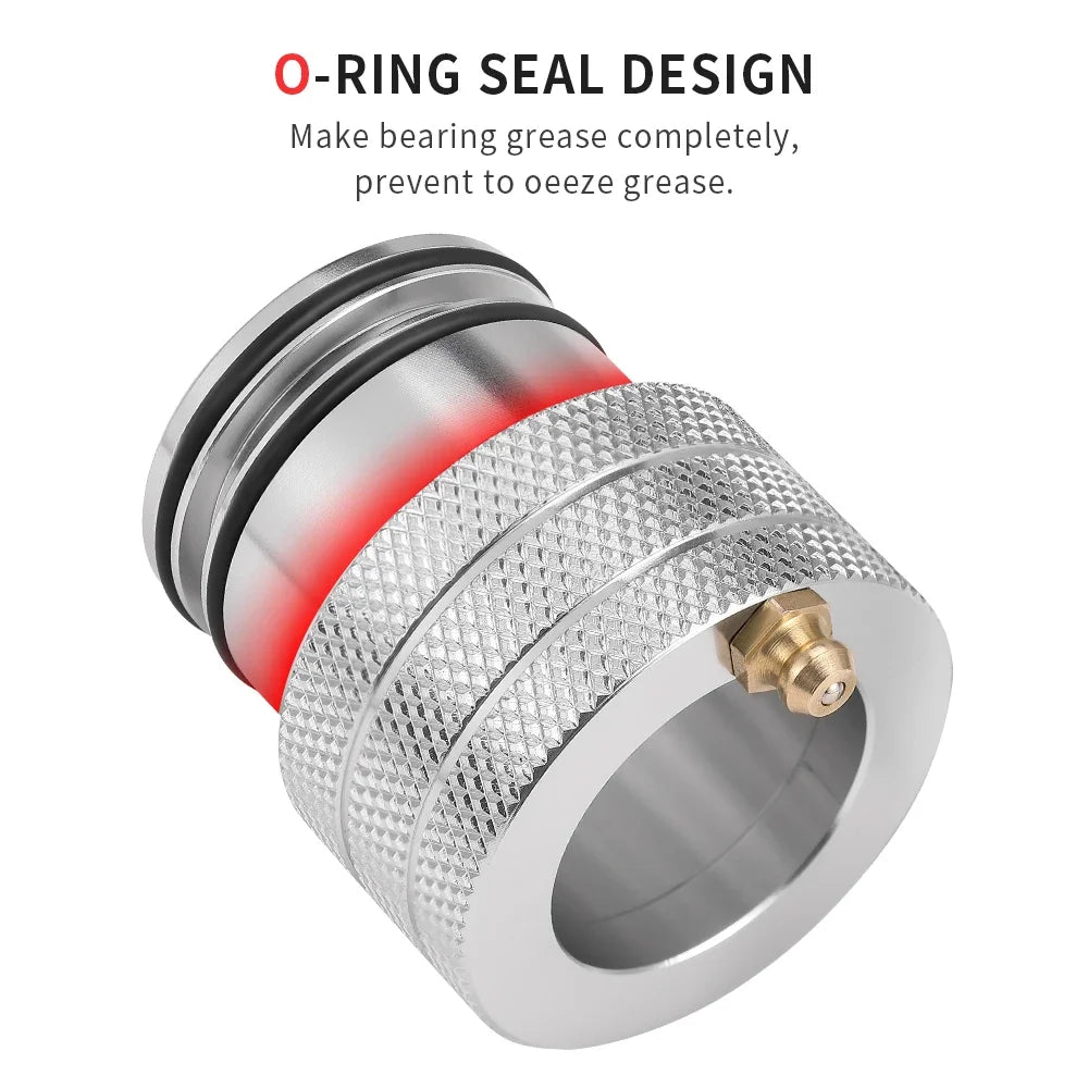 2. Double O-Ring seals to keep the grease inside of your bearings, which also spread the inner bearing races apart to allow a gap for the grease to easily flow inside. This grease tool will replenish the grease your bearings need, as well as push out contaminants.