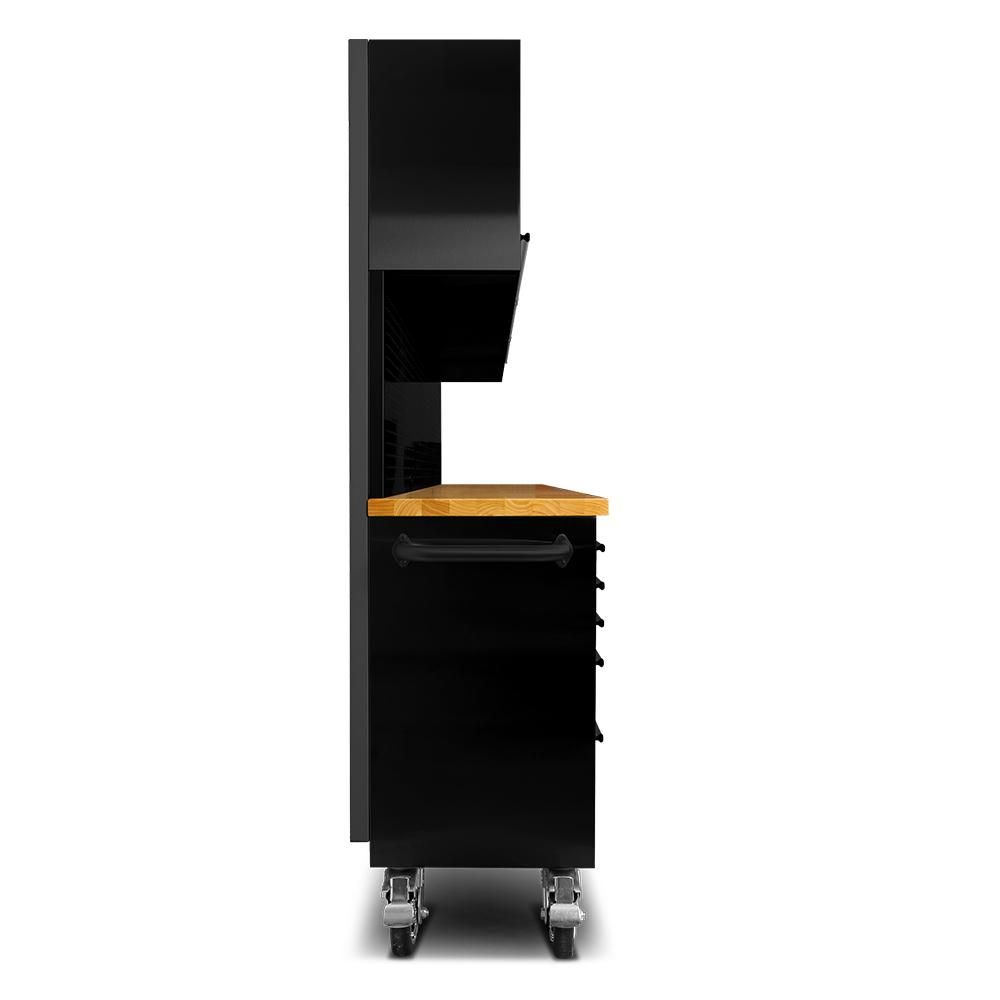 72" Matte Black Steel 15 Drawer Tool Chest with Solid Wooden Top, 3 Upper Cabinets and Peg Board