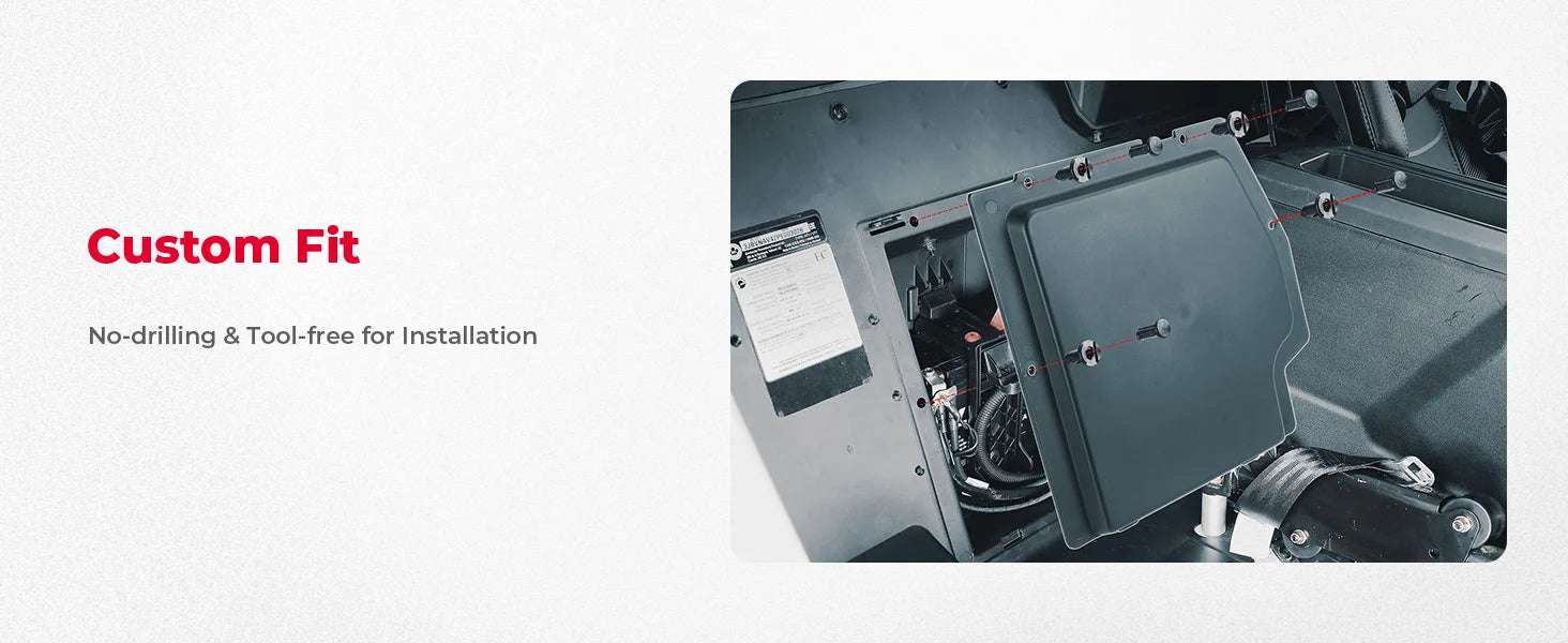The design is meticulously based on the original car battery storage opening's dimensions. It effectively conceals messy batteries and wires, offering a seamless and precise fit.