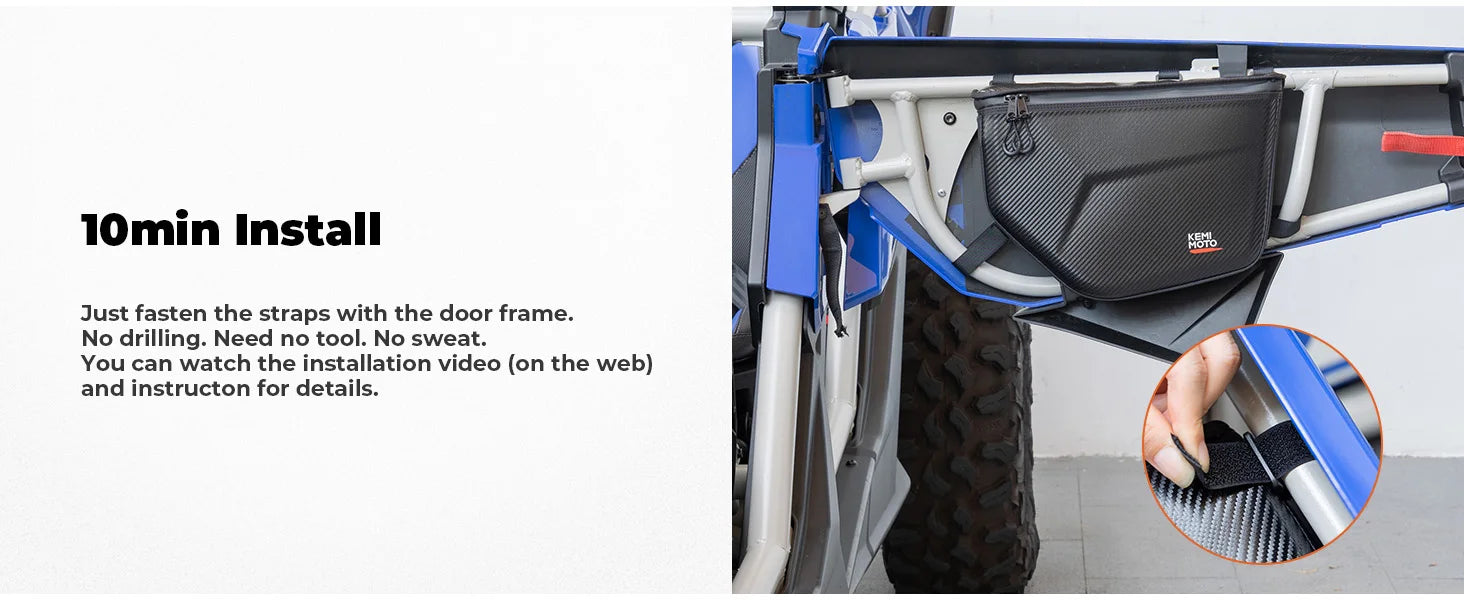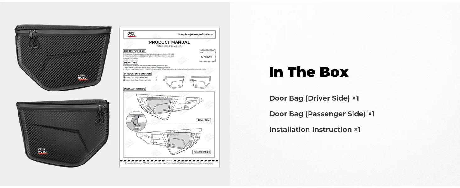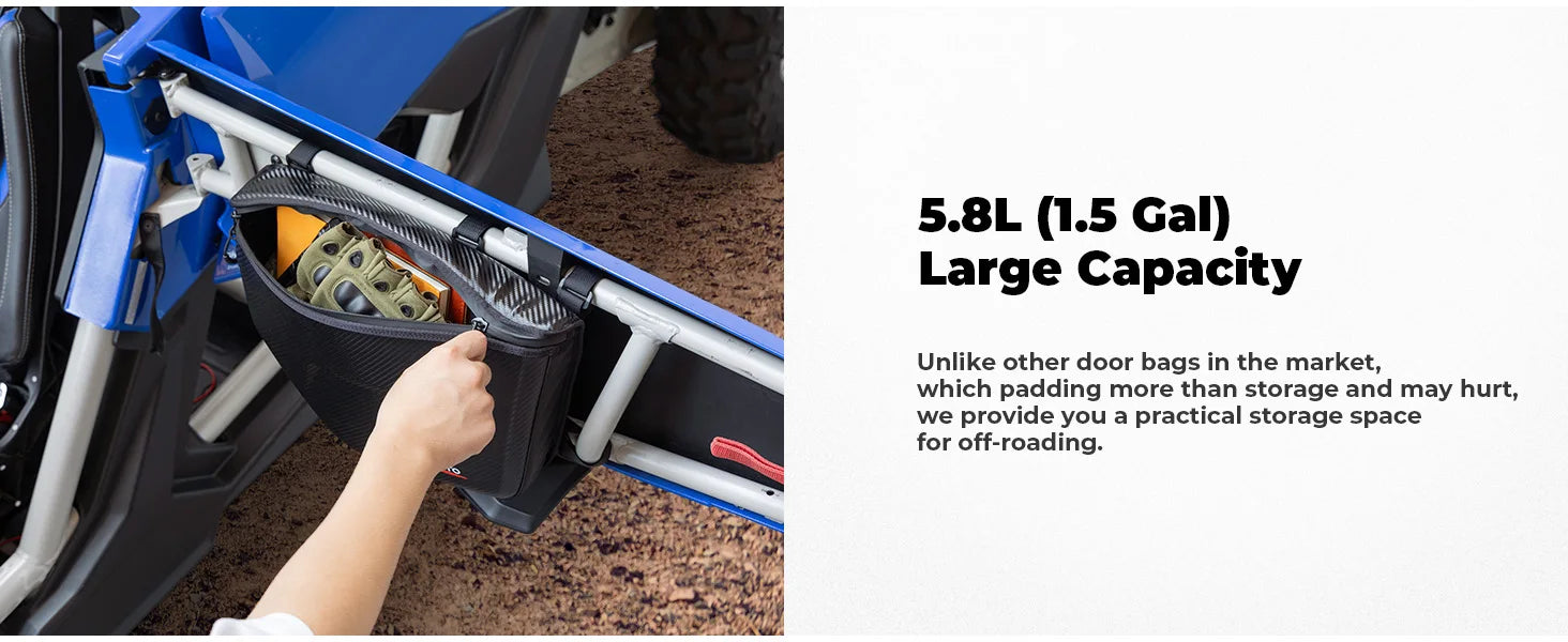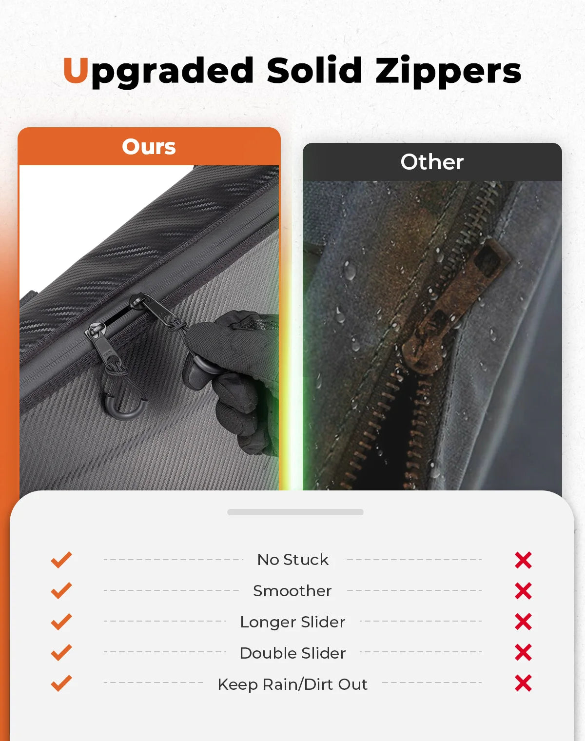 ● Water-Resistant Performance: The door bag surface is water-resistant, with durable, scratch-resistant material. Featuring dual-headed zippers with extended pull cords, it can be easily opened even while wearing gloves, ensuring convenience in use.
