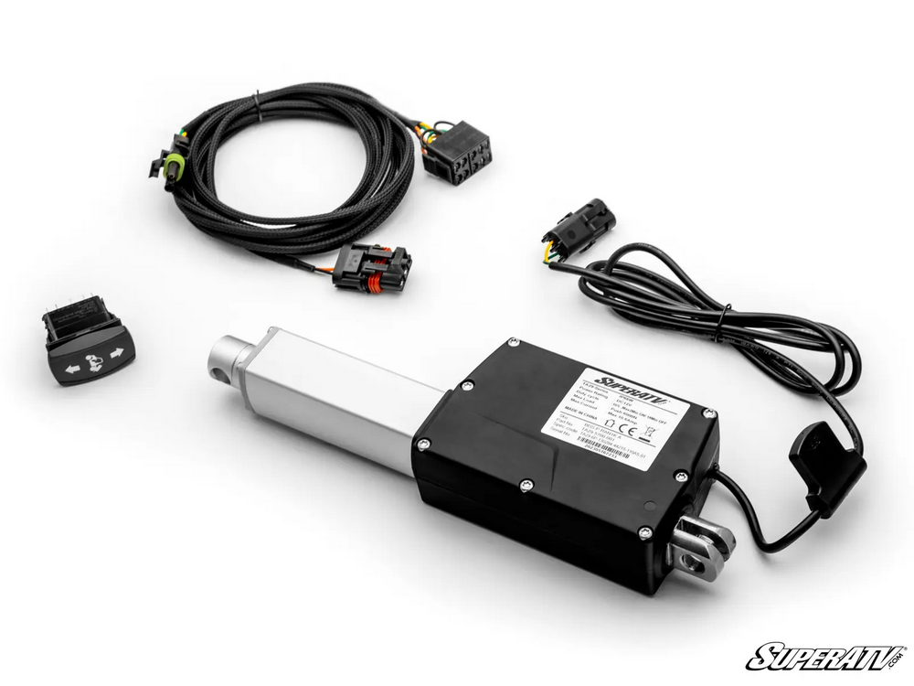 Save your back and make work easier the next time you need to unload your haul. Install SuperATV’s Polaris Ranger 1000 Electric Dump Bed Kit. It swaps out your stock gas struts for a powerful electronic actuator you operate from your cab. It’s capable of lifting all 1000 pounds your cargo bed is rated for.