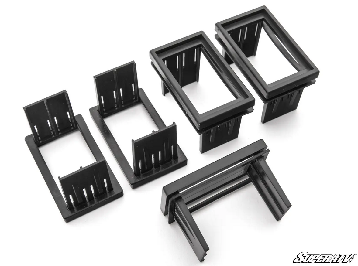 Polaris made the change to L-series switch openings in their Ranger dashes, and now all your standard switches are useless. Or you can get SuperATV’s Polaris Ranger 1000 Rocker Switch Adapters to turn those oversized openings into standard 1.45” x 0.830” switch openings and keep using them. These adapters come in a set of five and snap right into place easily.