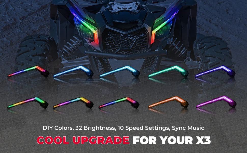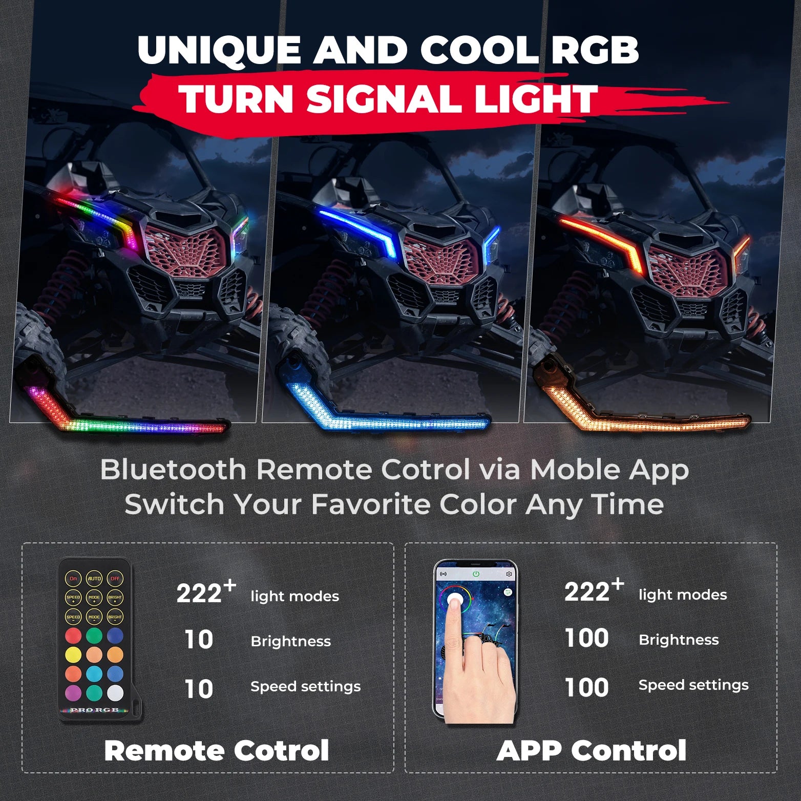 RGB Daytime Running Turn Signal Lights w/ Bluetooth KEMIMOTO UTV for Can Am Maverick X3 XDS XRS Turbo Trail Sport Max 2017-2024