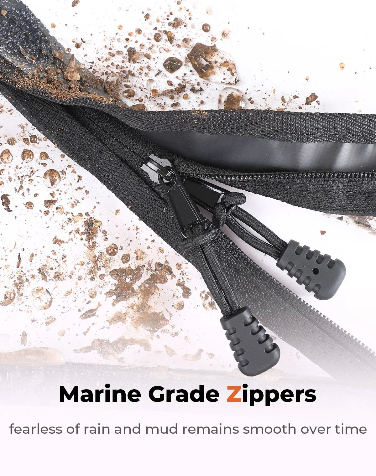 ● Convenient YKK Zipper Design: The high-quality YKK nylon zipper allows easy entry and exit, while the waterproof fabric covering the zipper helps block dirt and water, extending its lifespan. The reflective markings make it easier to locate the zipper position during nighttime driving, enhancing both convenience and safety.