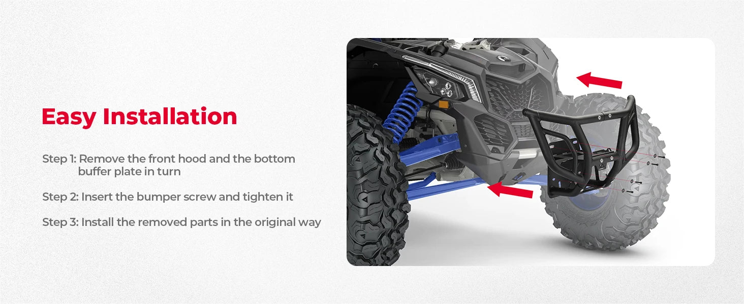 ♦ Easy Installation: The installation process is straightforward and hassle-free. Simply attach the bumper guards and connecting pipe, remove the front hood and bottom buffer plate, insert the bumper screws, and tighten them securely. Refer to the provided documentation for detailed installation instructions.