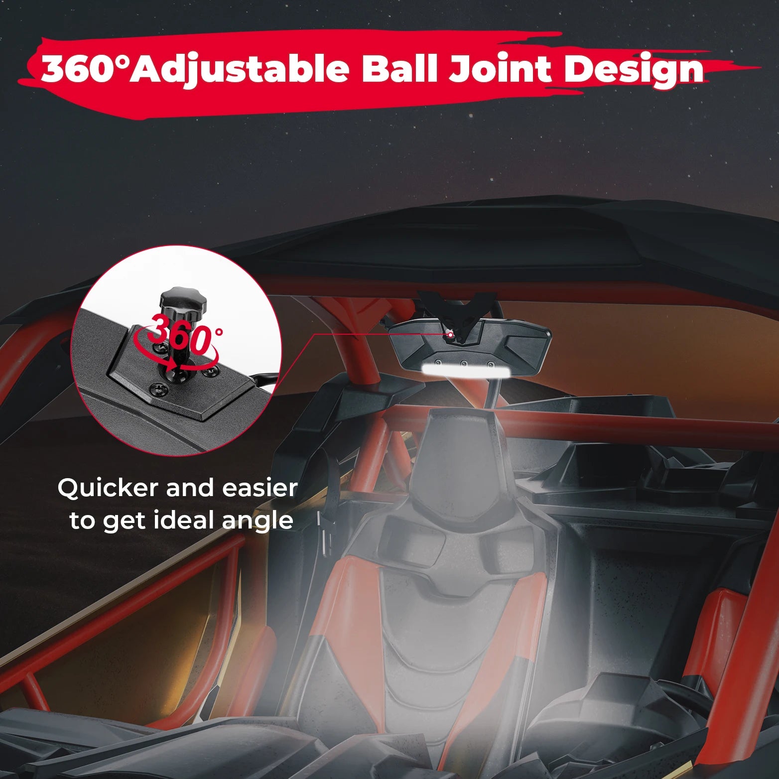 For enhanced nighttime visibility, KEMIMOTO has ingeniously incorporated an interior LED light with a rocker switch into the Maverick X3 center mirror. With up to 1000 lumens of brightness and a 50,000-hour lifespan, our UTV center mirror with lights ensures a bright and durable solution. No more fumbling for your phone or flashlight in the cab at night.