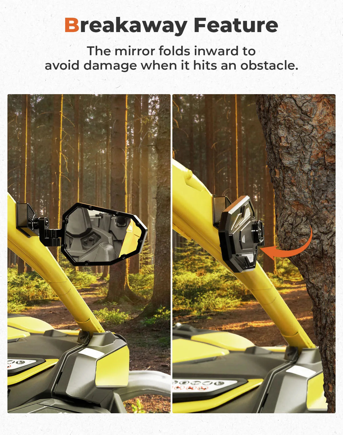 UTV Side Rear View Mirrors Aluminum For Can-am Maverick R X RS 2024 Enhanced Visibility Safety Adjustable Angles Folding Mirror